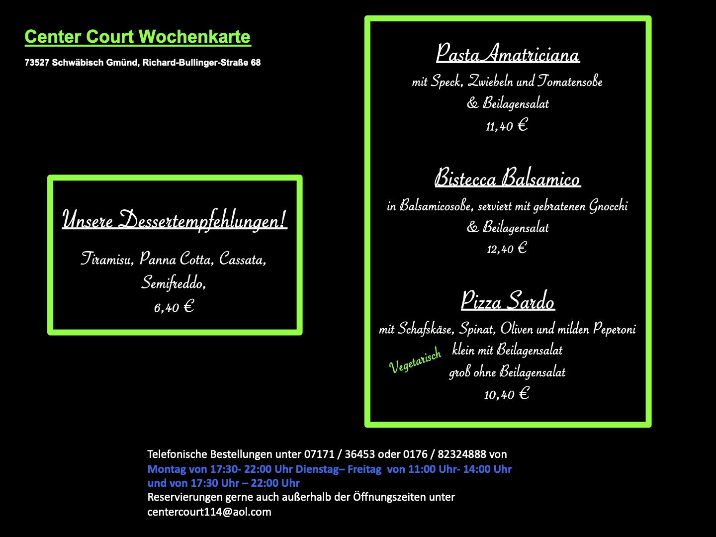 Unsere Speisekarte als Link: https://tennisgmuend.de/gastronomie/speisekarte/