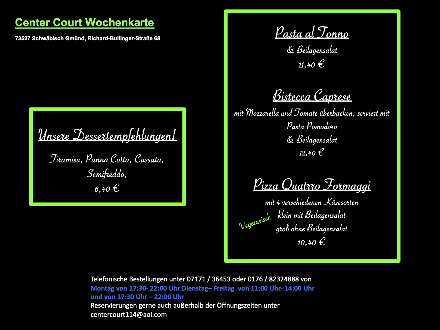 Unsere Speisekarte als Link: https://tennisgmuend.de/gastronomie/speisekarte/