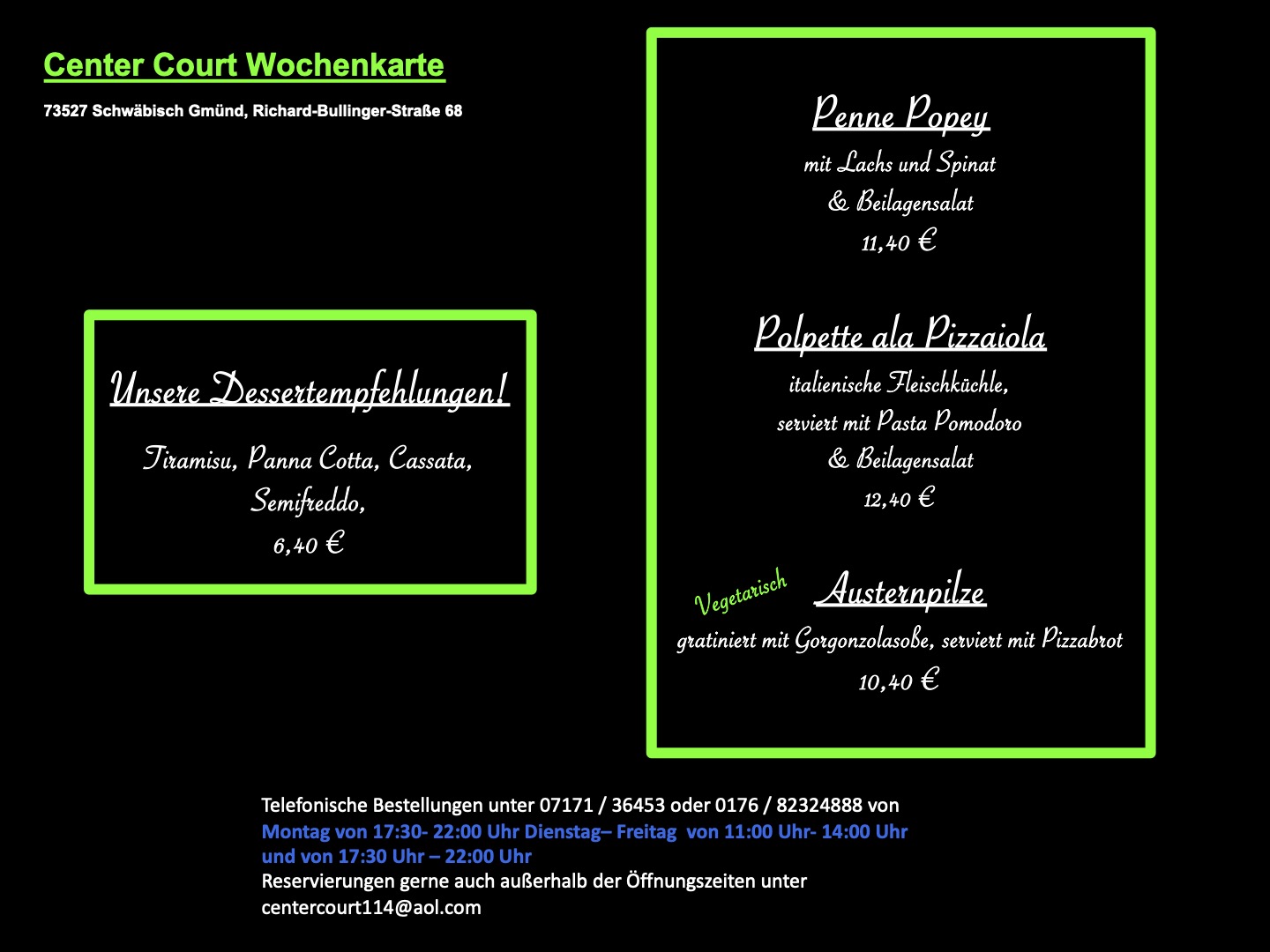 Unsere Speisekarte als Link: https://tennisgmuend.de/gastronomie/speisekarte/