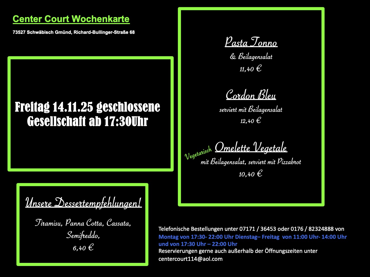 Freitag 14.11.25 geschlossene Gesellschaft ab 17:30 Uhr