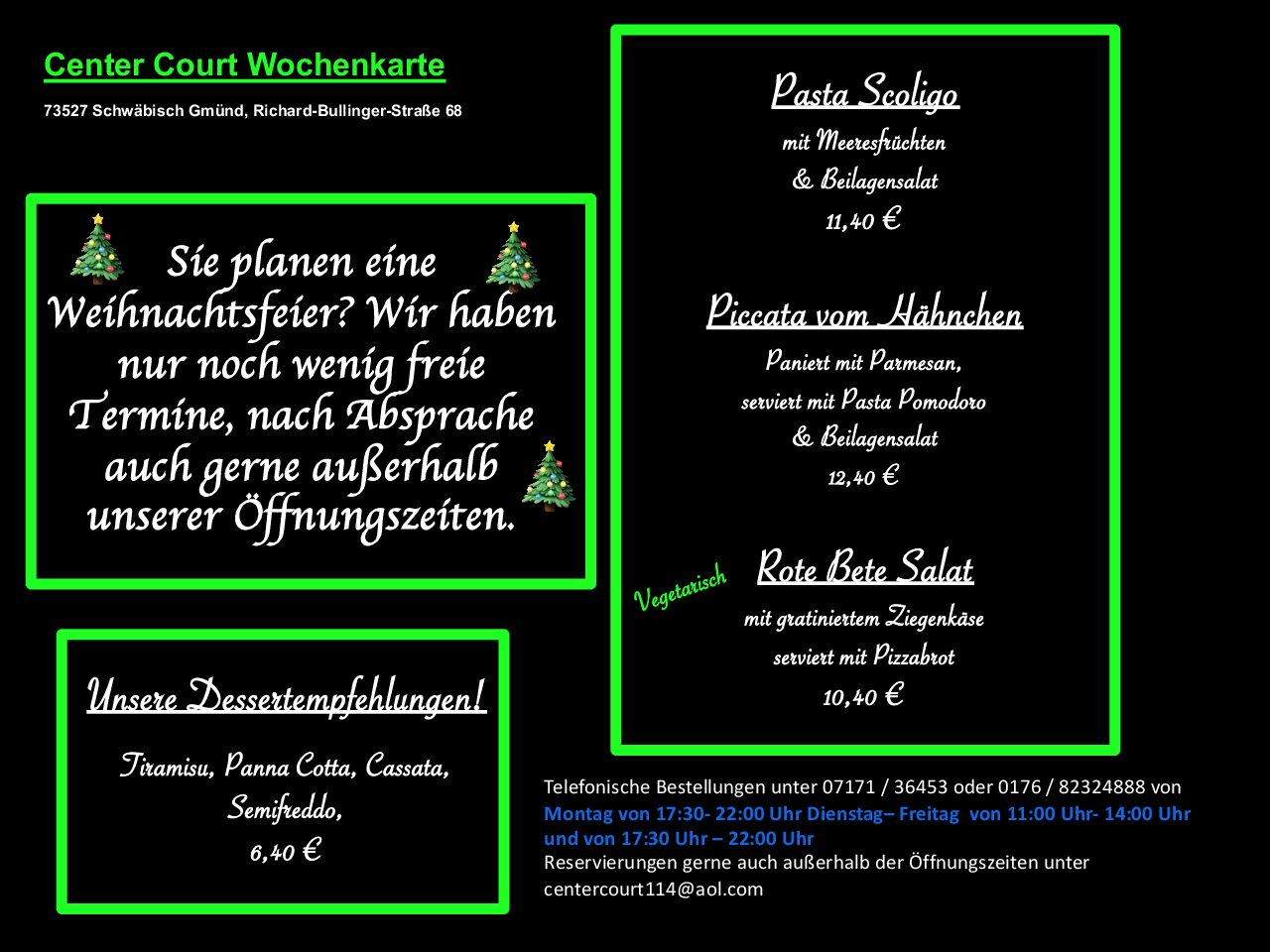 Das Team Center Court wünscht eine angenehme Arbeitswoche.