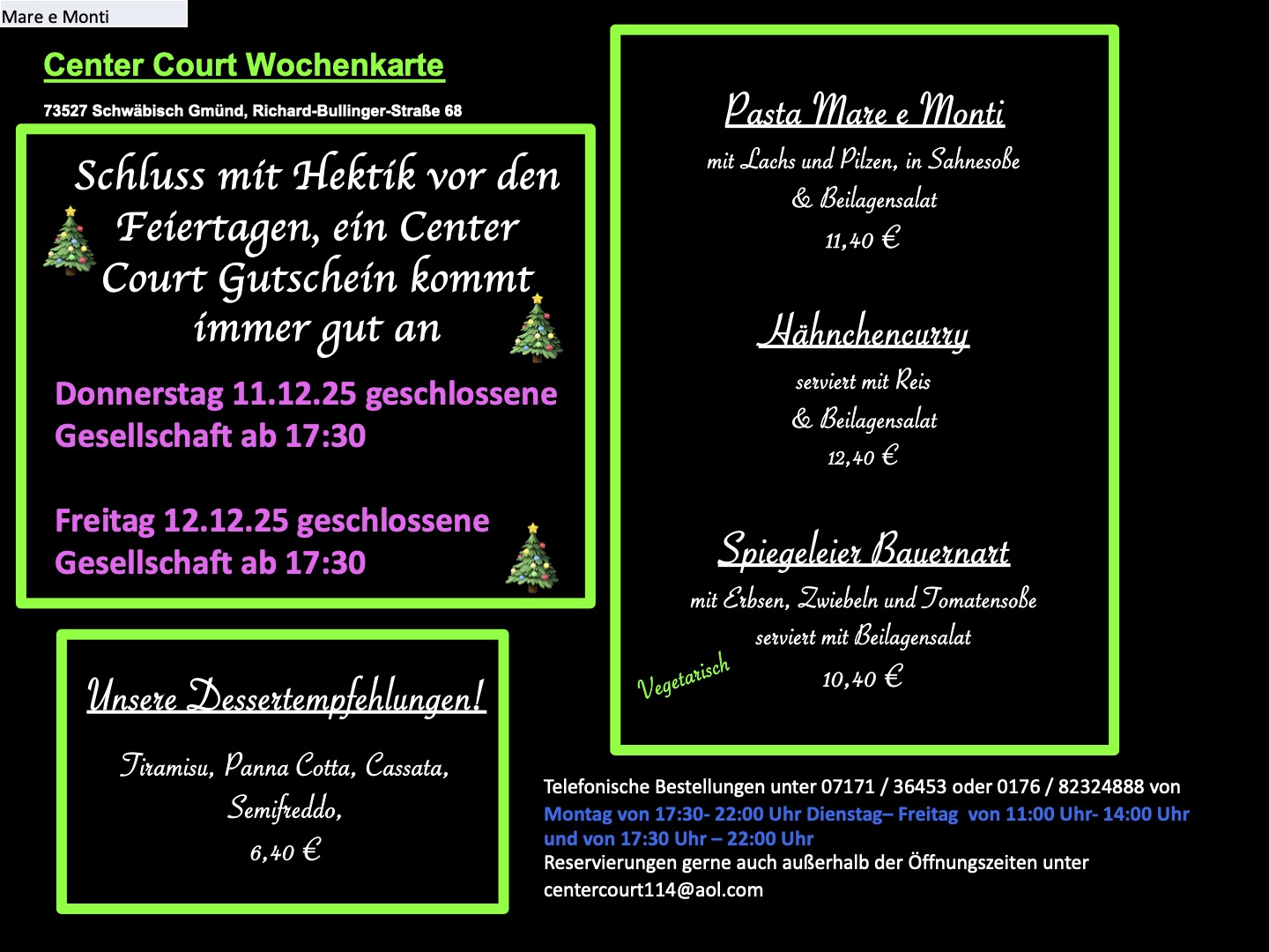 Unsere Speisekarte als Link: https://tennisgmuend.de/gastronomie/speisekarte/